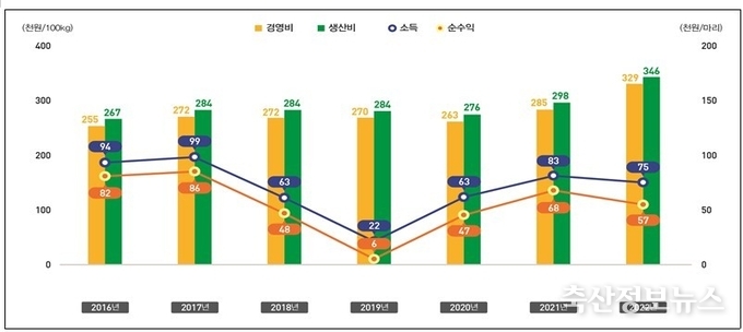통계청은 5월 26일 가축사육 및 생산에 투입된 직간접 비용을 조사한 ‘2022년 축산물 생산비 조사(2022. 1. 1~12. 31)’를 발표했다.