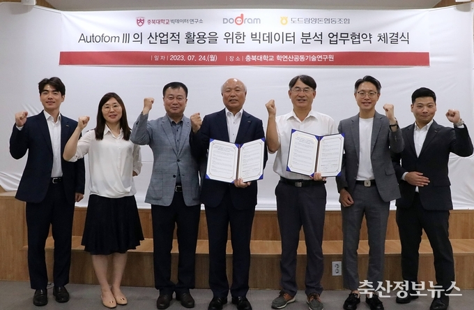 한돈 대표 브랜드 도드람(조합장 박광욱)이 지난 7월 24일 충북대학교 빅데이터연구소와 자동등급기계판정기 ‘오토폼Ⅲ(AutofomⅢ)의 산업적 활용을 위한 빅데이터 분석 업무협약’을 체결했다고 밝혔다.