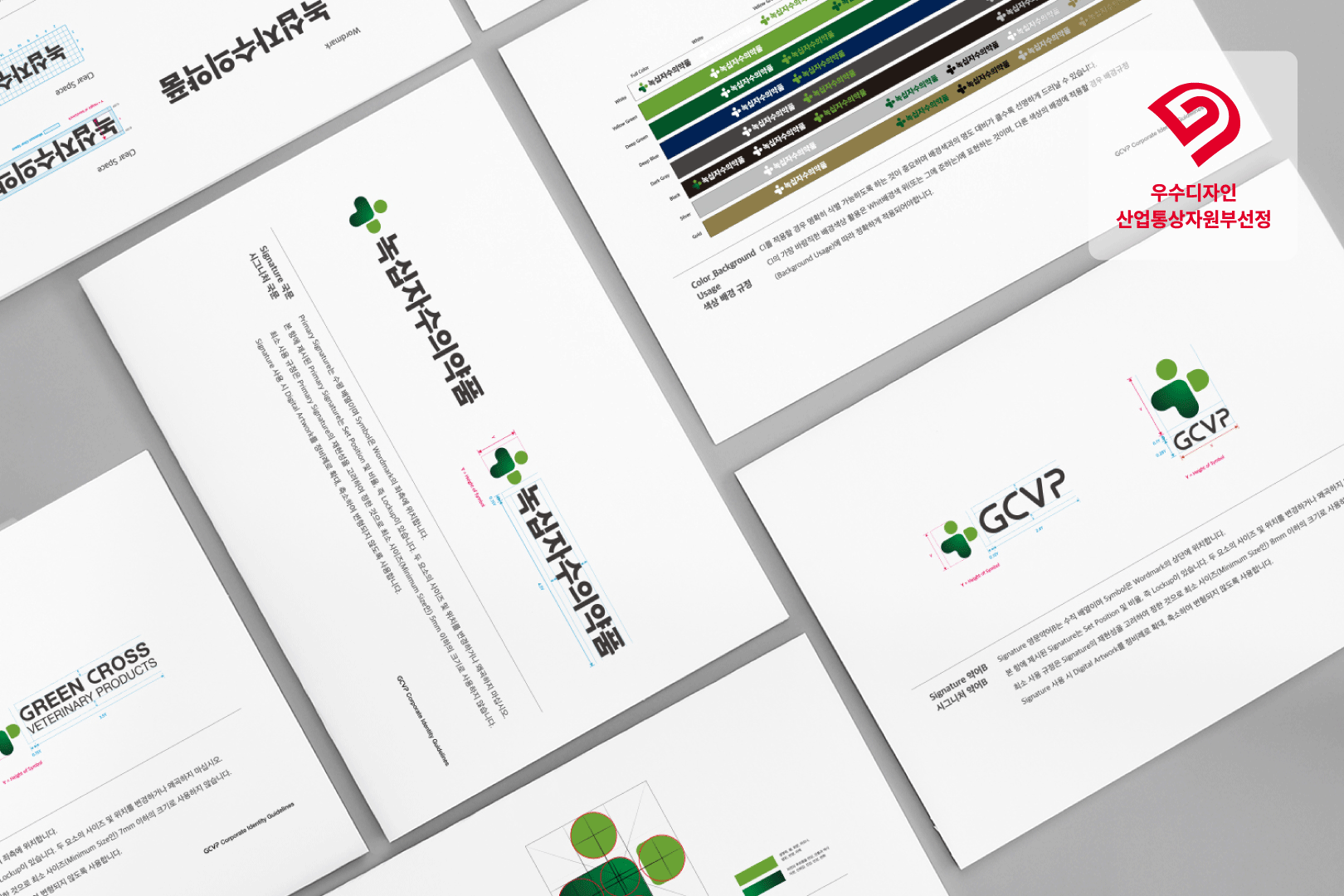 굿디자인으로 선정된 녹십자수의약품 CI는 50주년을 맞아 새롭게 변경된 미션인 'Better life with healthy animals'를 적용하여 디자인하였으며, 생명을 상징하는 심장과 사람을 상징하는 원, 동물을 상징하는 반원 도형의 조화를 통해 십자 모양(Cross)으로 보이도록 의도하였다. 3개의 도형은 각각 생명, 사람, 동물을 상징하며, 생명과 사람, 동물은 별개의 존재가 아니라 모두 유기적으로 연결된다는 원헬스(One Health)를 시각화하여 디자인하였다.