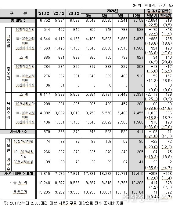■ 2024년 4/4분기(12월 1일 기준) 가축동향조사 결과