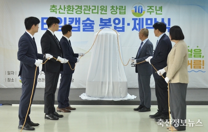 축산환경관리원(원장 문홍길)은 창립 10주년을 맞아 전체 임직원들이 참석한 가운데 타임캡슐 봉입 등 다채로운 행사를 진행했다.