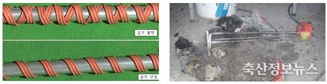 •보온 등 사용 시 결로 발생이 심하여 전기 선로 중 강약 조절기 이음부 노후화로 수직 연결 시 화재 발생 가능