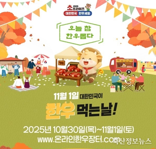 한편 10월 31일에는 전국한우협회가 주관하는 ‘대한민국이 한우먹는날’ 기념 행사가 서울 양재 하나로마트에서 열린다. 현장에서는 시민들이 한우를 직접 맛보고 즐길 수 있는 시식 행사와 다양한 체험 프로그램이 마련돼, 소비자와 한우농가가 함께 어우러지는 축제의 장이 마련될 예정이다. 이외 지역별 행사 및 이벤트 세부 내용은 한우유명한곳(www.한우유명한곳.com) 홈페이지에서 확인할 수 있다.