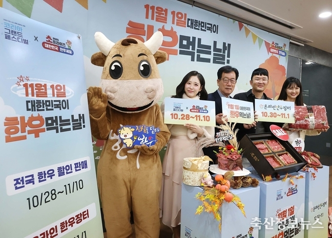 한우자조금관리위원회(위원장 민경천)와 (사)전국한우협회, 농협경제지주는 농림축산식품부와 함께 11월 1일 ‘대한민국이 한우먹는날’을 기념하고, 코리아 그랜드 페스티벌을 맞아 전국 한우농가들이 십시일반 거출한 한우자조금으로 전국 온·오프라인 대규모 한우 할인행사를 진행한다.
