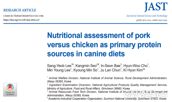 농촌진흥청 국립축산과학원 동물복지과 이휘철 과장은 “돼지고기 뒷다리 살은 영양가와 기호성을 갖춘 국산 단백질원으로, 반려견 사료에 충분히 활용할 수 있다”며 “국산 원료 기반의 반려동물 사료 개발이 확대될 수 있도록 연구를 이어가겠다”고 밝혔다.