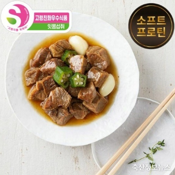 현대그린푸드의 더 부드러운 소고기 장조림은 고단백 연화식으로, 단백질과 류신·이소류신·발린을 쉽게 섭취할 수 있도록 설계됐다. 서울아산병원 노년내과와 현대그린푸드 그리팅 Lab이 공동으로 연구·개발했으며, 전자레인지로 데우기만 하면 바로 먹을 수 있는 편의성이 특징이다.