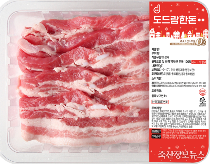 이번 겨울 에디션은 도드람한돈 포장(MAP) 패키지에 겨울과 크리스마스를 모티브로 한 디자인을 적용해, 따뜻한 연말 분위기를 한층 더했다. 눈송이가 흩날리는 겨울 풍경과 은은하게 불빛이 켜진 마을 풍경을 도드람의 브랜드 컬러 레드 기반으로 표현해 계절감을 직관적으로 전하면서 포근한 감성을 전달한다.