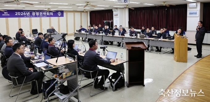 ㈜우성(대표이사 한재규)은 지난 12월 26일 주요 임직원이 참석한 가운데 ‘2026년 경영전략 회의’를 계최하였다. 2025년 경영 성과를 점검하는 한편 2026년 경영목표와 중장기 성장 전략을 공유했다.