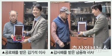 오토휀(AUTO FAN)브랜드로 널리 알려진 성일기전(대표이사 이동호)은 올해가 창립 30주년을 맞는 뜻깊은 해로, 지난 20여년 동안 회사의 성장에 공헌한 생산관리부 남용래 이사에게 감사패를 전달하였다. 또한 축산 환기 분야에서 다양한 컨트롤러 개발은 물론 최근 절찬리에 보급하고 있는 ‘SL-BLEON(블레온)’에 장착된 BLDC 모터 개발을 주도한 기술지원부 김기석 이사에게 공로패를 전달하였다. 아울러 김기석 이사는 (사)한국축산환경시설기계협회장으로부터도 축산기자재 산업 발전에 이바지한 공로로 표창장을 받았다.