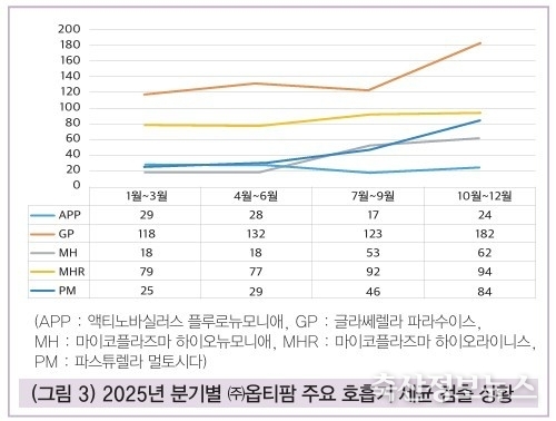 2. 2025년 국내 세균성 호흡기 질병 검출 동향