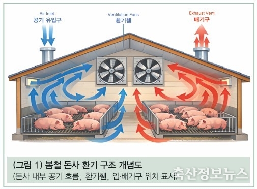 봄철은 기온 상승과 함께 주야간 일교차가 커지고 습도가 증가하는 시기로, 양돈장 관리 전반에 걸쳐 각별한 주의가 요구된다. 겨울철 관리 방식이 그대로 유지되면 환기 불균형, 호흡기 질병 증가, 생산성 저하, 악취 및 민원, 안전사고로 이어질 가능성이 크다. 따라서 봄철은 단순한 계절 변화가 아니라 연중 농장 경쟁력을 좌우하는 환경·질병·시설·안전 종합 점검의 핵심 시기라 할 수 있다. 본 원고는 봄철 양돈장에서 반드시 점검해야 할 주요 관리 요소와 함께 현장에서 즉시 적용 가능한 개선 포인트를 사진·그림 중심으로 정리하였다.