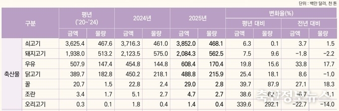 ■ 2025년 1~12월 축산물 모니터링 품목별 수입 동향