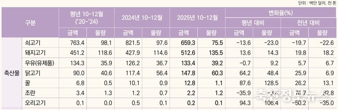 ■ 2025년 10~12월 축산물 모니터링 품목별 수입 동향