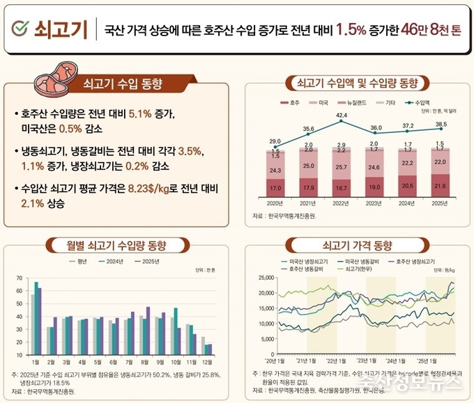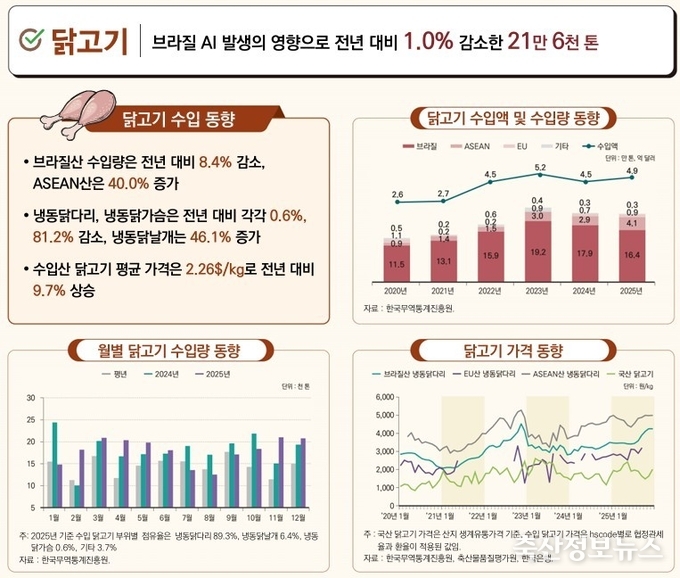 한국농촌경제연구원 FTA 이행지원센터에서 발표한 2025년 4분기(10~12월) FTA 체결국 농축산물 수출입 동향 중 주요 축산물의 품목별(쇠고기, 돼지고기, 닭고기) 수출입 동향을 소개합니다.