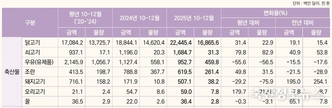 ■ 2025년 10~12월 축산물 모니터링 품목별 수출 동향