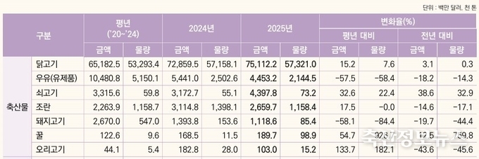 ■ 2025년 1~12월 축산물 모니터링 품목별 수출 동향