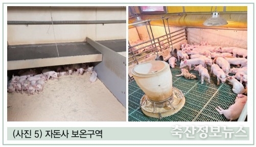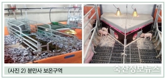 그리고 분만사 온도는 모돈과 자돈구역을 분리해 관리해야 한다. 특히 포유자돈의 경우 보온구역을 반드시 확보해 포유자돈에 대한 피해를 최소화해야 한다. 분만사 온도가 27℃ 이상의 온도를 유지한다고 해도 자돈은 추위를 느낄 수 있어서, 포유자돈을 위한 보온구역을 설치해야 한다.