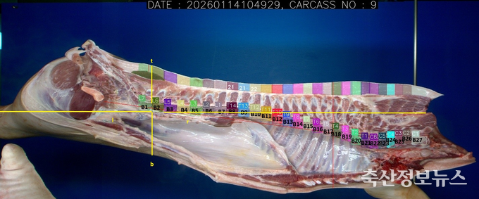 ‘인공지능 기반 돼지 품질 평가 장비’는 영상 정보를 활용해 도체의 품질을 자동으로 분석하고 등급판정에 활용하는 장비다. 축산물품질평가원은 2025년 국립축산과학원과 함께 해당 장비를 활용해 ‘삼겹살 내 지방 비율’과 ‘거래 정육량’ 등 정보를 개발하여 품질과 관련된 다양한 데이터를 현장에 제공할 수 있게 됐다.
