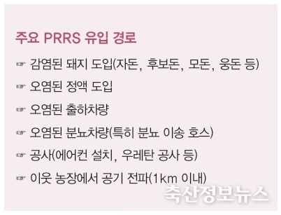 실제 사례 : 에어컨 공사와 우레탄 공사로 인한 PRRS 유입 사례가 확인되었다.