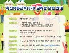 축산정보뉴스 안영태 기자 | 축산물품질평가원(원장 박병홍)은 10월 30일부터 31일까지 ‘축산상품 판로개척 실무 교육’을 진행한다. 축산물품질평가원은 최근 급변하는 소비 환경에 맞춰 축산상품의 판로를 확대하는 실질적인 방법을 나누기 위해 이번 교육을 마련했다. 교육은 △축산유통 경향, △오프라인 판로의 종류, △자사 제품의 분석과 판로 선정 방법, △온라인 매출 확대를 위한 전략, △축산상품 유통 사례 등 실무 중심 내용으로 진행된다. 축산물품질평가원은 기획부터 판매 전략까지 판로 구축 전 과정을 교육해 참여자의 유통채널 활용 역량을 높일 계획이다. 이번 교육은 경기도 수원시에 있는 한국농수산식품유통공사(aT) 농수산식품유통교육원에서 이루어지며 신청은 해당 누리집에서 선착순으로 진행된다. 정원은 30명으로 축산유통 분야에 관심이 있다면 누구나 참여할 수 있다. * 한국농수산식품유통공사(aT) 농수산식품유통교육원 누리집 : https://edu.at.or.kr 참여자는 3만원의 자부담 비용이 있으며, 교육 기간 중 숙박, 식사 및 다과는 축산물품질평가원이 제공할 예정이다. 박병홍 원장은 “급변하는 축산유통 환경에서 종사자들이 다양한 판로를 개척하고 경쟁력을