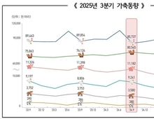 축산정보뉴스 안영태 기자 | 국가데이터처 「가축동향조사」는 한․육우, 젖소, 돼지, 닭, 오리를 대상으로 매분기(3, 6, 9, 12월) 1일 00시 기준 가축의 가구(농장)수와 마릿수를 조사한 자료로, 2025년 3/4분기(9월 1일 기준) 가축사육마릿수는 전년동기대비 산란계, 육용계는 증가하고, 한·육우, 젖소, 돼지, 오리는 감소한 것으로 나타났다. ■ 2025년 3/4분기(9월 1일 기준) 가축동향조사 결과 ▶한·육우 : 사육마릿수는 342만2천마리로 전년동기대비 15만8천마리(-4.4%), 전분기대비 3만8천마리(-1.1%)로 각각 감소했다. 가임암소의 지속적 감소로 전년동기대비 1세 미만 -6.1%, 1~2세 미만 -7.6%, 2세 이상 -1.5% 감소함. ▶젖소 : 사육마리수는 37만2천마리로 전년동기대비 8천마리(-2.1%) 감소하고 전분기대비 2천마리(0.5%) 증가했다. 가임 젖소 감소로 전년동기대비 1세 미만 -2.8%, 1~2세미만 -4.1%, 2세 이상 -1.3% 감소함. ▶돼지 : 사육마릿수는 1,103만7천마리로 전년동기대비 14만5천마리(-1.3%) 감소하고 전분기대비 14만1천마리(1.3%) 증가했다. 전년동기대비 모돈의 감소