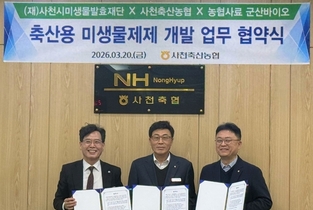 농협사료 군산바이오·사천축협·사천시미생물발효재단, 축산용 미생물 사업화 업무협약(MOU) 체결