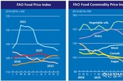 축산정보뉴스 안영태 기자 | 유엔 식량농업기구(FAO)*에 따르면 2025년 10월 세계식량가격지수는 126.4포인트**를 기록, 전월(128.5포인트) 대비 1.6% 하락했으며 두 달 연속 내림세가 이어졌다고 밝혔다. 품목군별로 곡물, 육류, 유제품, 설탕 가격은 하락, 유지류 가격은 상승하였다. * 유엔 식량농업기구는 24개 품목에 대한 국제가격동향(95개)을 조사하여, 5개 품목군(곡물, 유지류, 육류, 유제품, 설탕)별 식량가격지수를 매월 작성, 발표(2014~2016년 평균=100) ** (5월) 127.1 → (6월) 128.1 → (7월) 129.8 → (8월) 129.8 → (9월) 128.5 → (10월) 126.4 ■ 2025년 10월 품목군별 가격지수 변동원인 ☞ (10월 곡물 가격지수) 103.6포인트 (전월 104.9포인트 대비 1.3% 하락) 주요 곡물인 밀, 보리, 옥수수, 수수의 가격이 모두 내려갔으며, 남반구 지역의 안정적인 생산, 북반구 겨울 밀 파종 진전 등이 영향을 미쳤다. 다만 유럽연합(EU)과 미국의 옥수수 수확량 감소 우려, 미·중 간 무역 협정이 하락폭을 일부 완화했다. 쌀 가격도 경쟁 심화와 주요 수출국 수확기 진