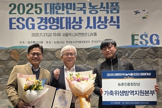 가축위생방역지원본부, ‘2025 대한민국 농식품 ESG 경영대상’ 최우수상 수상