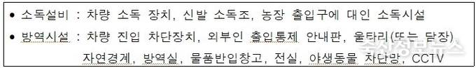 닭·오리 사육 농가가 “입식 사전신고”를 하는 경우 “소독설비 및 방역시설의 설치 현황 및 정상작동 여부”를 확인하고, 그 점검표를 작성하여 추가로 제출할 수 있도록 하는 확인표를 마련했다.