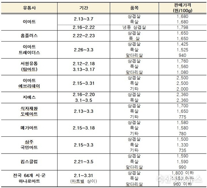 농림축산식품부(장관 송미령)는 한돈자조금관리위원회와 협력하여 설 성수품 수급 안정 등을 위해 실시한 국내산 돼지고기에 대한 할인행사를 3월까지 연장한다고 밝혔다.
