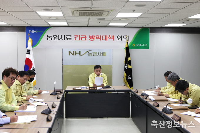 농협사료(대표이사 김경수)는 5월 11일 농협사료 5층 대회의실에서 본사 및 지사무소 임직원이 참석한 가운데 구제역 확산방지 대책 마련을 위한 「긴급 방역대책 회의」를 화상으로 개최했다.