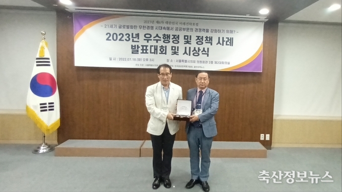 가축위생방역지원본부(본부장 위성환)는 ‘2023년 우수 행정 및 정책사례 선발대회’에 참여하여 공공기관 부문 우수상을 받았다고 밝혔다.