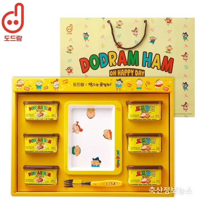 아이들에게 인기 만점인 ‘도드람햄 오 해피데이 선물세트’는 고품질 도드람한돈을 사용해 저온 숙성 후 특별한 레시피로 만들어 더욱 부드럽고 깊은 풍미를 자랑한다. 여기에 인기 애니메이션 ‘짱구는 못말려’ 캐릭터가 햄 패키지와 선물세트 포장에 적용돼 있어, 아이들에게 더욱 특별한 선물이 될 수 있다.