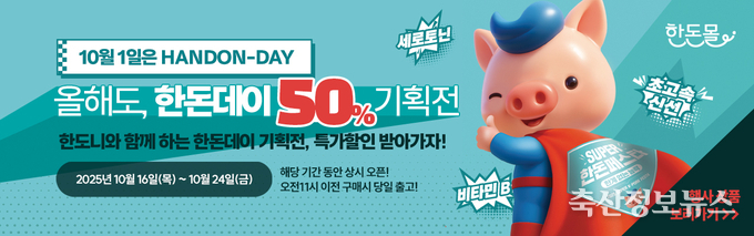 온라인 소비자들을 위한 역대급 혜택도 마련된다. 한돈 공식 온라인 쇼핑몰인 ‘한돈몰’은 10월 16일부터 24일까지 ‘한돈데이 50% 기획전’을 열고 소비자들에게 최대 반값 할인 혜택을 제공한다. 한돈자조금은 품질 좋은 한돈을 합리적인 가격에 구매할 기회를 제공하며 온라인 소비자와의 접점을 강화하고 한돈의 우수성을 널리 알릴 계획이다. 특히 해당 기간 평일 오전 11시 이전 구매 시 당일 출고되는 등 신선 배송 서비스를 강화하여 온라인 쇼핑 편의성을 높인다.