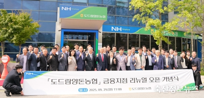 도드람양돈농협(조합장 박광욱)은 지난 9월 29일 박광욱 조합장을 비롯한 경기 지역 조합원, 임직원 등 관계자들이 참석한 가운데 경기도 이천시에 있는 도드람양돈농협 금융지점(본점) 리뉴얼 오픈 기념식을 개최했다.