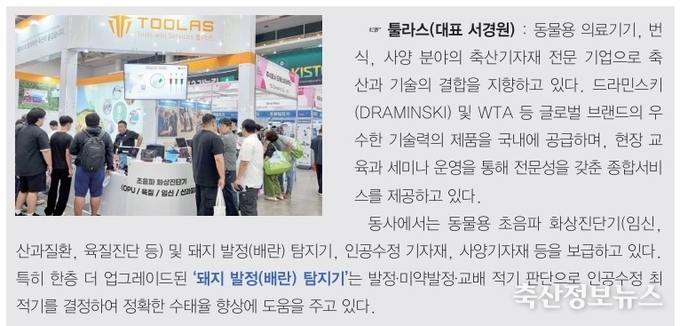 이번 박람회에서는 ‘축산의 고유 가치와 디지털 이행’을 주제로 현장의 다양한 목소리와 미래 과제를 함께 담아낸 전시와 프로그램들이 펼쳐졌다. 이와 함께 이슈가 되고 있는 축산환경 개선 테마(분뇨처리·냄새저감·축사환경 제어) 등 환경관리 기술과 폭염 대응 축사냉방 솔루션 등 기후변화 대응 품목이 별도의 시연장과 함께 안내돼 해당 기술을 직접 확인할 수 있도록 하는 점에서 관심을 모았다.