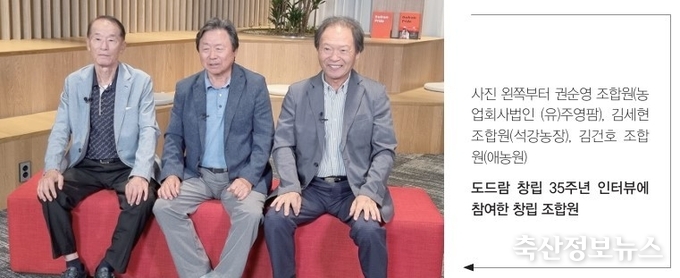 본지에서는 서울시 강동구에 있는 도드람타워에서 도드람양돈농협 창립에 참여한 조합원 중 3분(▲김건호 조합원(애농원), ▲김세현 조합원(석강농장), ▲권순영 조합원(농업회사법인(유)주영팜))을 모시고 창립 당시 상황 및 조합과 후배 조합원에게 전하는 의견을 듣고 소개한다.