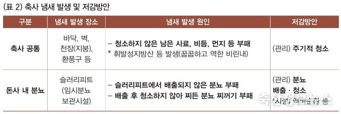 다만 농장과 지역에 가축분뇨 저장 및 처리시설 인프라가 구축돼 있어야 한다. 그래야 청소 및 신속 배출을 통해 축사 외부로 나온 분뇨 등 냄새 물질을 최종 처리할 수 있기 때문이다. 가축분뇨 저장 및 처리시설 인프라 구축을 위해서는 부지확보, 예산 지원 등 농장, 지자체, 중앙정부 및 유관기관 모두의 관심과 노력이 필요하다.