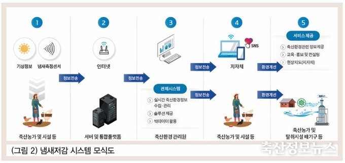 농림축산식품부는 축산 냄새저감 필요지역을 중심으로 정보통신기술(ICT: Information & Communication Technology) 장비를 활용하여 실시간 환경·냄새 정보를 수집·분석‧제공함으로써 효과적인 냄새저감 활동을 할 수 있도록 지원하고 있다. 농장에 온·습도 및 암모니아 가스를 측정하는 센서와 통신장비를 설치하고 측정된 값은 축산환경관리원 전산시스템으로 전송된다. 전송된 냄새 정보는 해당 설치 농가와 지자체가 언제든 확인할 수 있다. 축산환경관리원은 냄새 모니터링을 통해 암모니아 가스 농도가 높게 측정될 경우 농가와 지자체에 안내 문자 발송, 현장 확인 및 냄새 저감 컨설팅 등도 지원하고 있다.