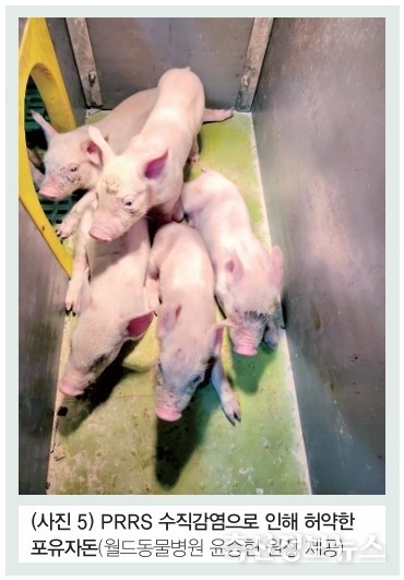 지난 겨울철에 주의해야 할 호흡기 질병, 위축성비염과 마이코플라즈마 폐렴에 대해 기고가 있고 여러 농장주분이 처방이나 백신 프로그램을 문의하였다. 지난 원고의 연장으로 환절기, 즉 환기에 변화를 주는 시점에서의 질병들에 대해 다뤄보고자 한다. 최근 돈가가 높은 이유가 여름철 고온 다습한 환경으로 인해 증체지연도 있지만, 고병원성 PRRS(돼지생식기호흡기증후군, Porcine Reproductive & Respiratory Syndrome)의 발병으로 대군농장이나 양돈단지 내 농가들의 피해가 지속되면 출하물량이 부족하여 돈가가 상승하면서 소비에 의한 돈가 상승이 아닌 생산부족으로 인한 돈가 상승이 이뤄지고 있다. 그로 인해 수입물량이나 대체재인 수입산 소고기로의 소비패턴이 바뀌고 있어 양돈농가의 고심이 커지고 있다.