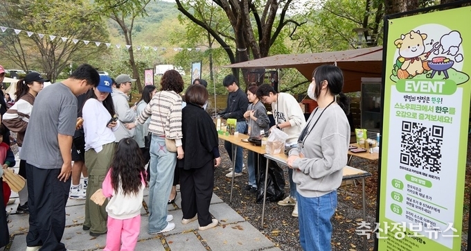한우자조금관리위원회(위원장 민경천)는 가을 캠핑 시즌을 맞아 용인 에버랜드 캠핑필드에서 열린 ‘2025 스노우피크 가을 설봉제’에 참여해 지난 10월 18일부터 19일까지 현장을 방문한 캠핑족을 대상으로 한우 시식과 체험 이벤트를 성공적으로 진행했다.