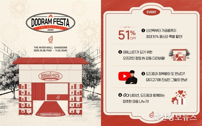 전문식품 브랜드 도드람(조합장 박광욱)은 한돈 대표 브랜드로서의 정체성을 강화하고 소비자와 함께 도드람 맛의 즐거움을 나누기 위해 10월 27일부터 11월 9일까지 ‘2025 DODRAM FESTA : THE GRILLIST(2025 도드람 페스타)’를 개최한다고 밝혔다.