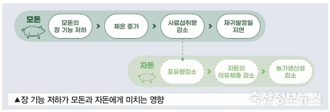 모돈의 장 기능 저하는 모돈뿐만 아니라 자돈에게도 피해를 주며, 장기적으로 나아가서는 농가 수익성에도 영향을 준다. 그렇기에 모돈의 장 기능 저하로 인해 문제가 발생하는 것에 대해서 더 이상 간과해서는 안 된다.