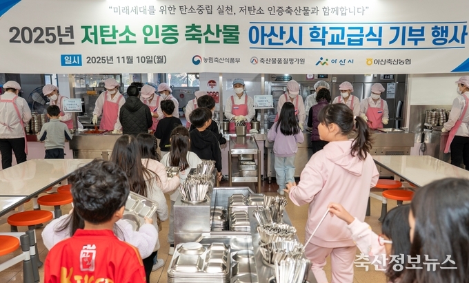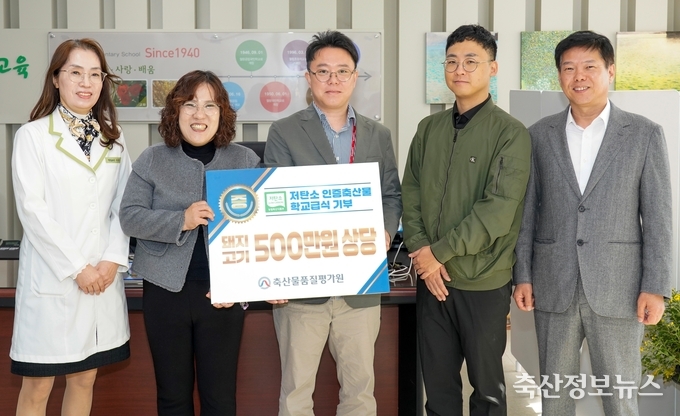축산물품질평가원(원장 박병홍)은 지난 11월 10일 미래세대와 저탄소 인증 축산물의 가치를 공유하고자 아산시 4개 초등학교에 500만원 상당 저탄소 인증 돼지고기를 기부했다.