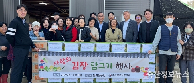 축산물품질평가원(원장 박병홍)은 지난 11월 6일 김장철을 맞아 농가 주부 모임과 함께 세종시 울여울 농장에서 ‘사랑의 김장 담그기’를 진행했다.