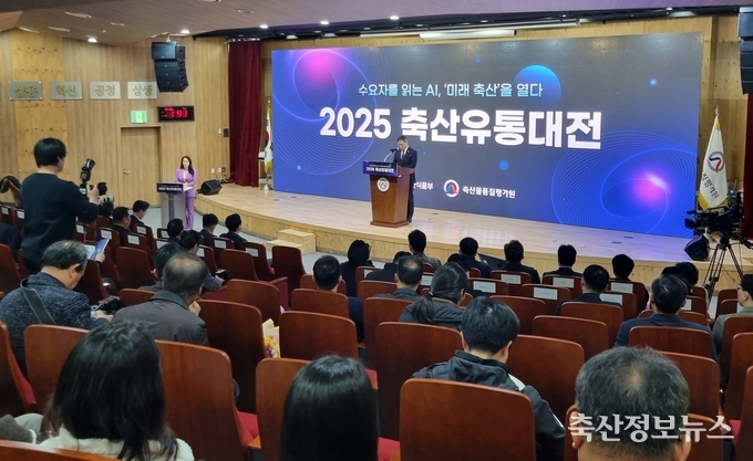 축산물품질평가원(원장 박병홍)은 지난 12월 11일 본원 세종홀에서 ‘2025 축산유통대전’을 개최했다고 밝혔다. 1부와 2부로 나눠 진행된 행사는 ‘수요자를 읽는 인공지능(AI), ‘미래 축산’을 열다’를 주제로, 한 해의 산업 변화 흐름을 돌아보고 2026년 축산업 주요 트렌드를 전망하는 자리로 마련됐다.
