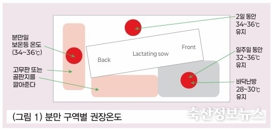 ①분만사 환경을 재점검(모돈 구역과 자돈 구역의 온도환경은 다름)