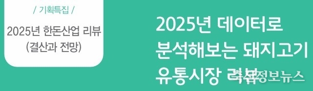 2025년 돼지고기 유통시장은 무더위와 소모성 질병, 높은 수입육 가격과 환율, 소비 부양을 위한 노력 속에서 작년보다 다소 줄어든 공급량과 높아진 가격을 보여 주었다. 그러나 4분기 들어 돼지 생육의 적정 기온에 따른 비육돈의 정상 성장으로 출하량이 강세를 보이며, 주 40만 마리 이상 출하되고 있다. 이에 따라 공급량과 가격은 안정세를 되찾으며 마무리될 것 같다.