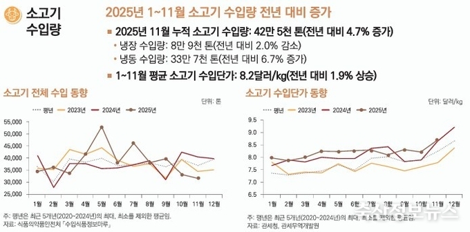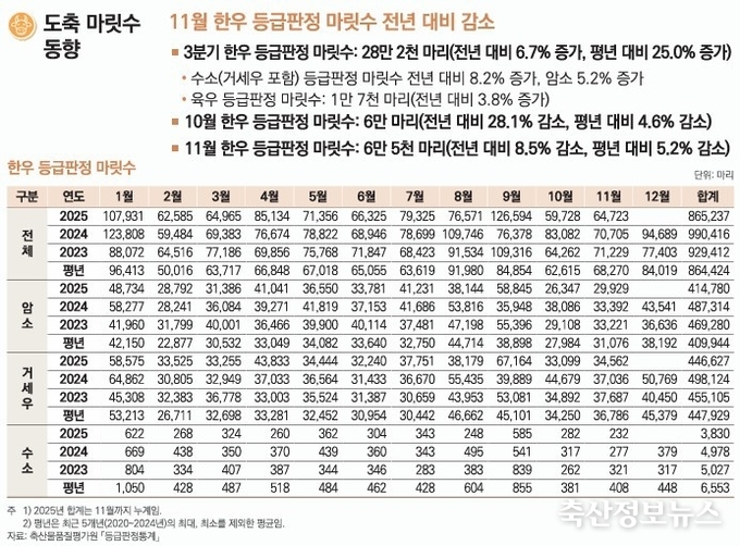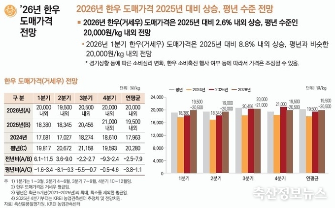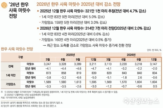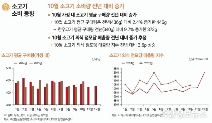한국농촌경제연구원 농업관측센터, 축산관측동향(한우) 2025년 12월호 발표