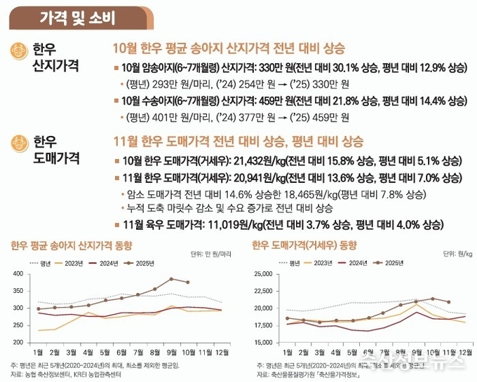 한국농촌경제연구원 농업관측센터, 축산관측동향(돼지) 2025년 12월호 발표
